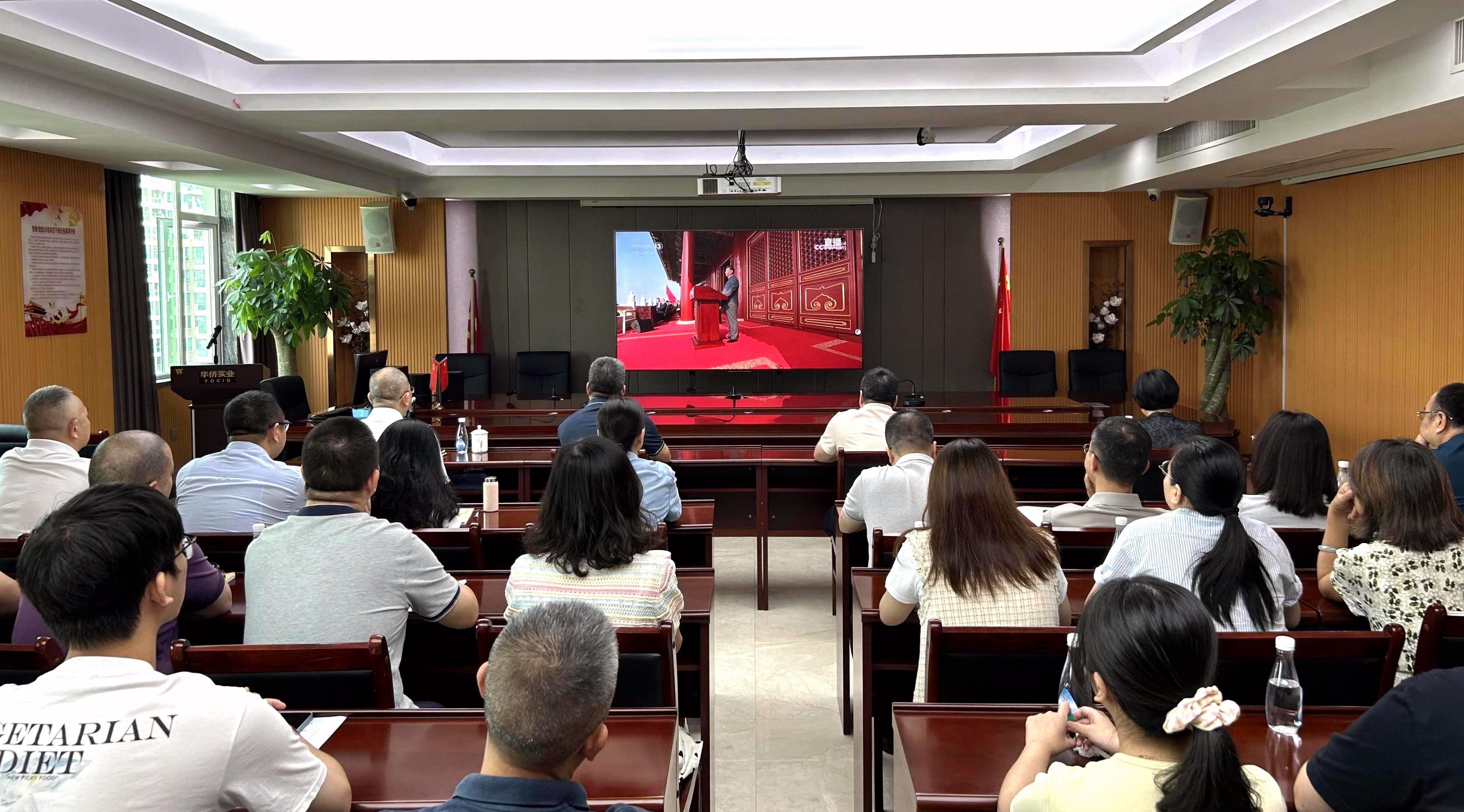 華僑實(shí)業(yè)集團(tuán)組織收看中國人民抗日戰(zhàn)爭暨世界反法西斯戰(zhàn)爭勝利80周年紀(jì)念大會直播